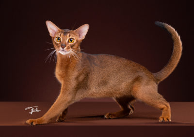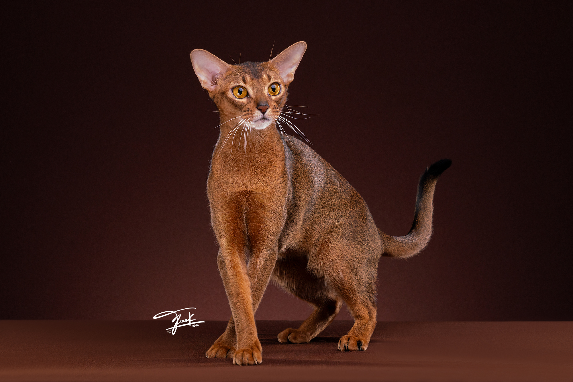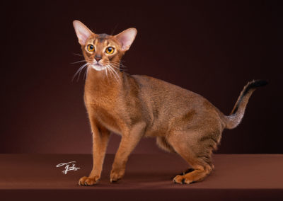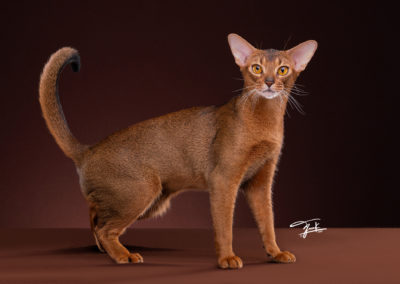 GC, BWI, NW BangkokCats Athena is the sweetest abyssinian kitten we could ever dream about, and she has all features extremely well balanced making her a perfect Abyssinian in all senses. She is out of GC, BWI, DW Kinglike Eros of BangkokCats and CH Orlandove Valentina, DM. Athena was a National Winner as a kitten and she was 9th Best Kitten Internationally among all breeds in 2023-2024 season. On her first show as an adult, she obtained the Grand Champion title with just one show, putting her on the 2nd highest scoring adult cat among all breeds! Once she became an adult, she also got a National Winner as an adult and she was the Best Abyssinian in CFA (Breed Winner International) of the 2024-2025 season.