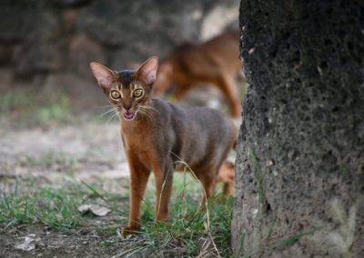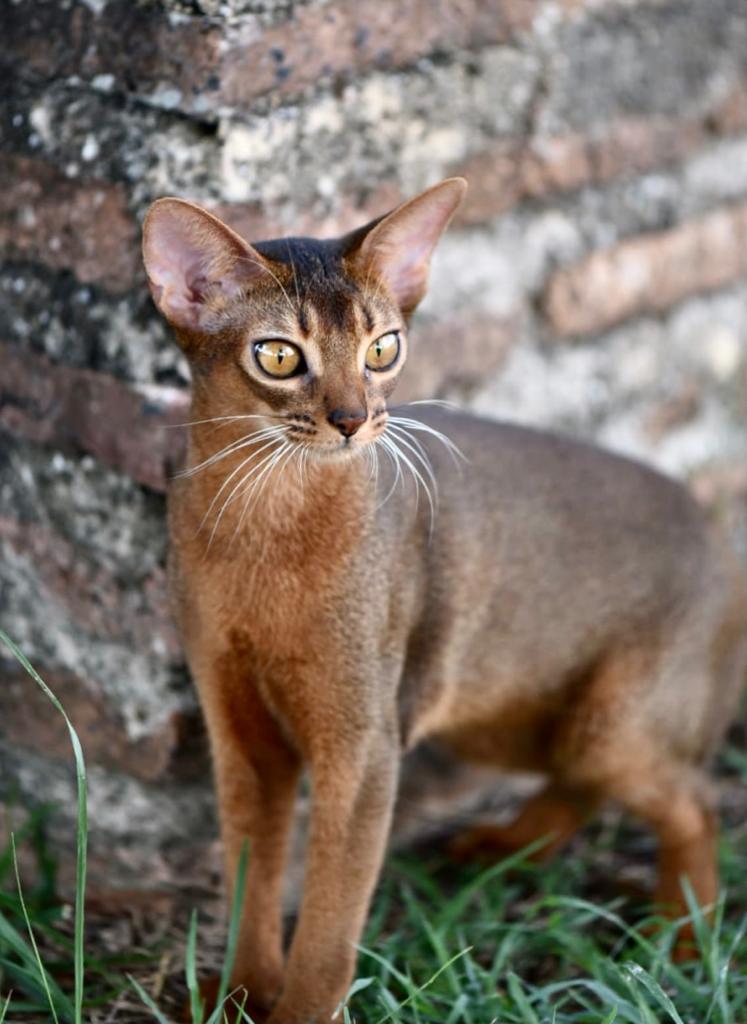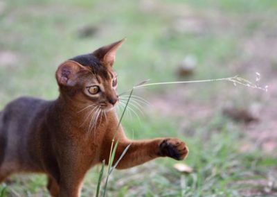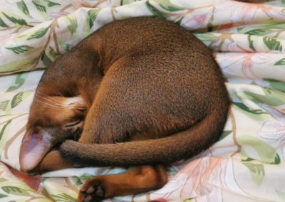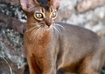CH Orlandove Valentina is a ruddy Abyssinian female with a spectacular warm color and mesmerizing copper eyes. Her body is really well balanced and the ticking could not be better. She has produced amazing kittens since she arrived to us, with 6 Grand Champions in CFA and obtaining the Distinction Merits title. She carries for dilute and she can produce amazing blue color abyssinians.